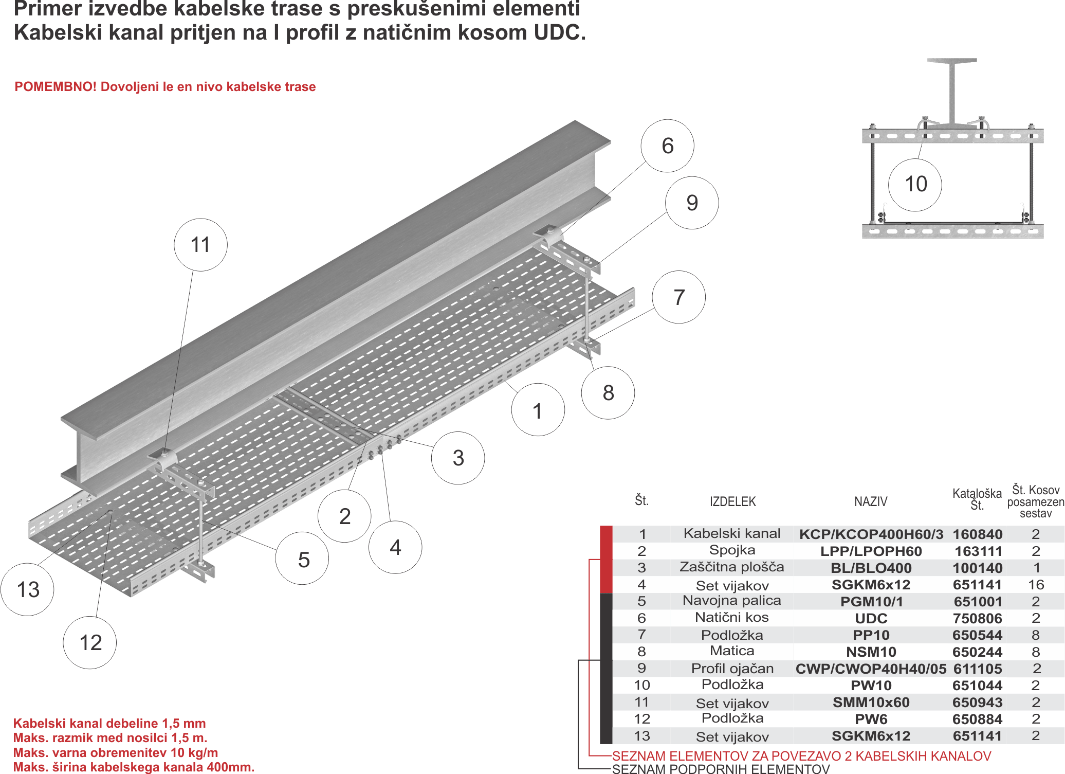 42-2 - Kabelski kanal pritrjen na I profil z natičnim kosom UDC