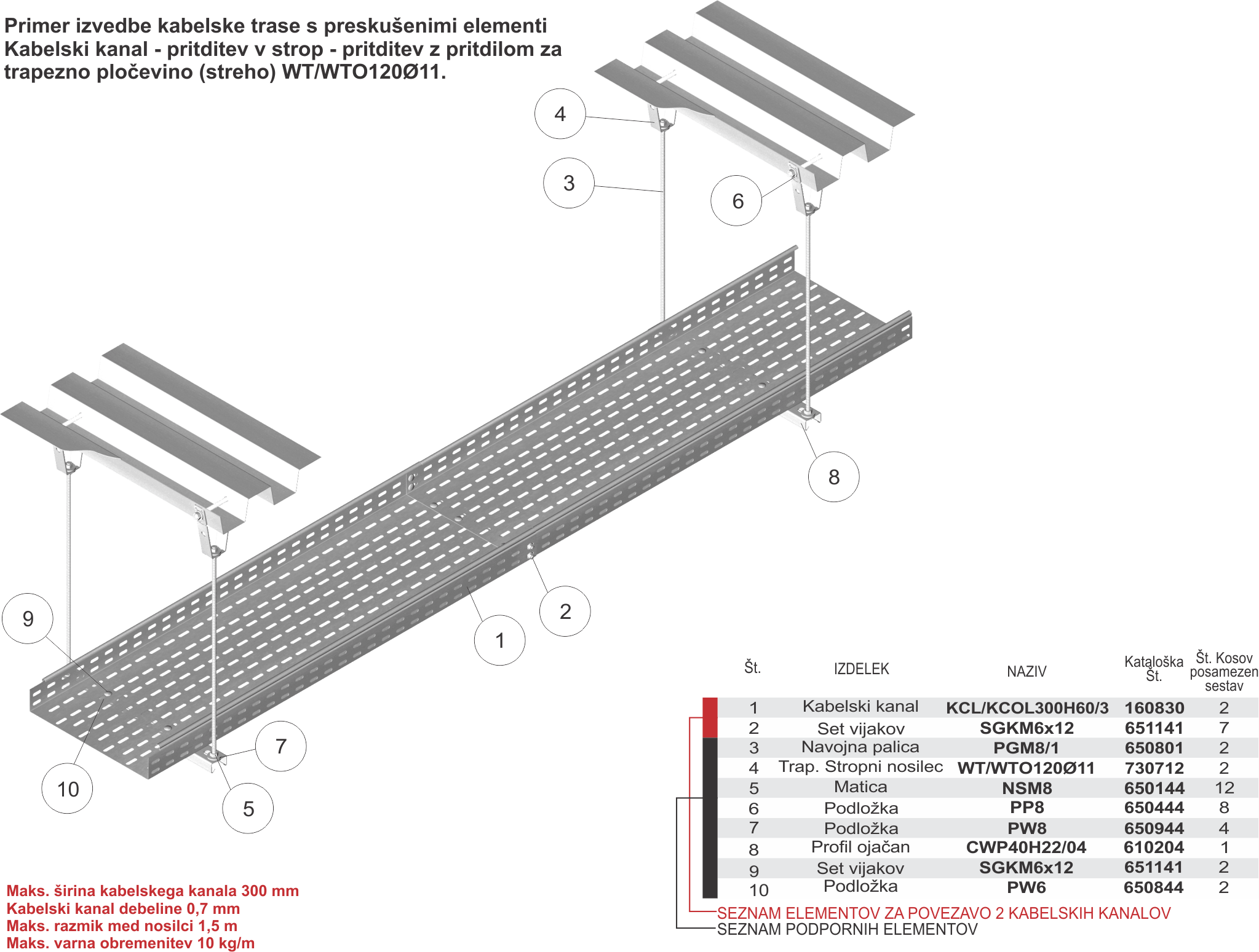 45-2 - Kabelski kanal - pritrditev v strop - pritrditev z pritrdilom za trapezno pločevino
