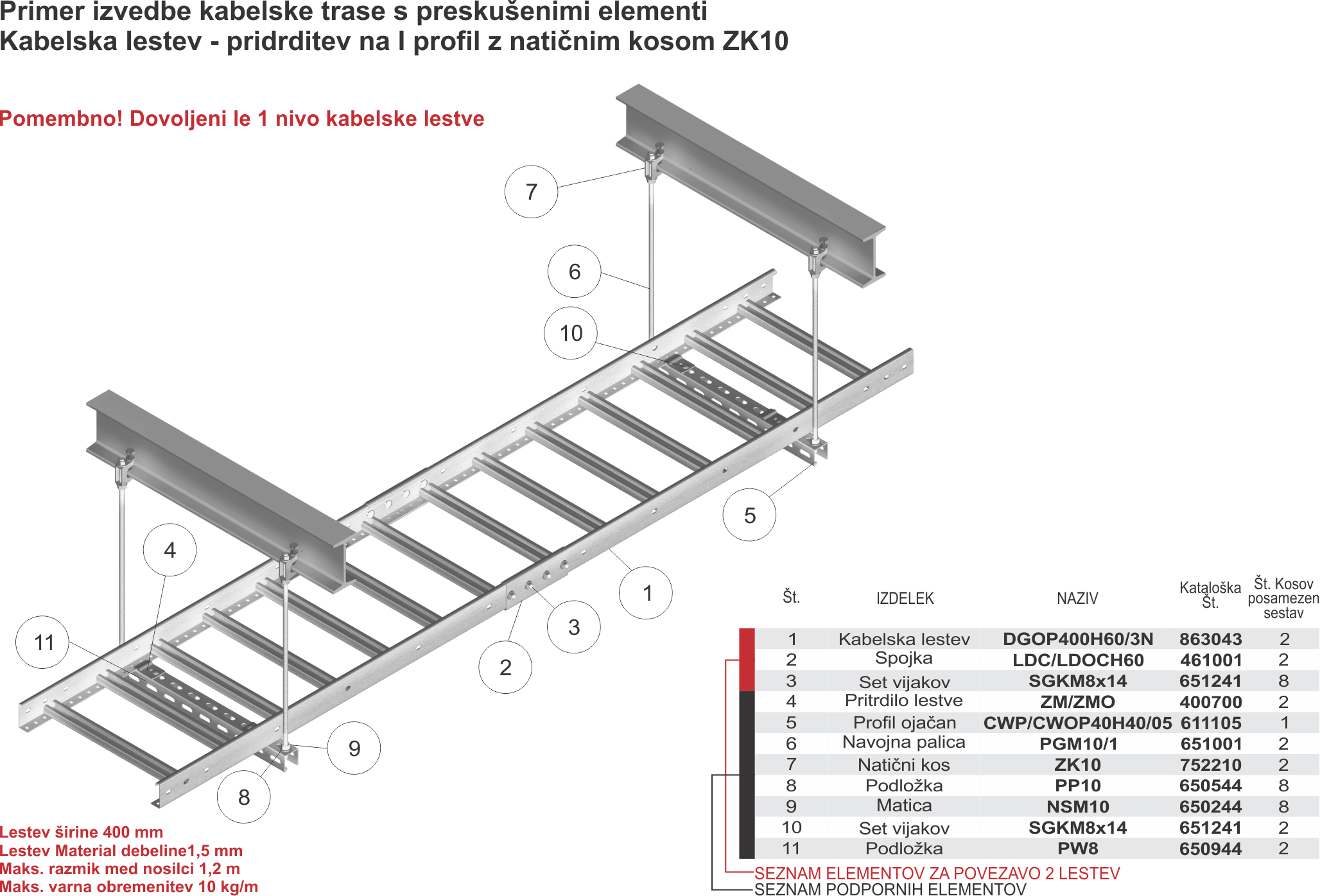 53-1 - Kabelska lestev - pritrditev na I profil z natičnim kosom ZK10