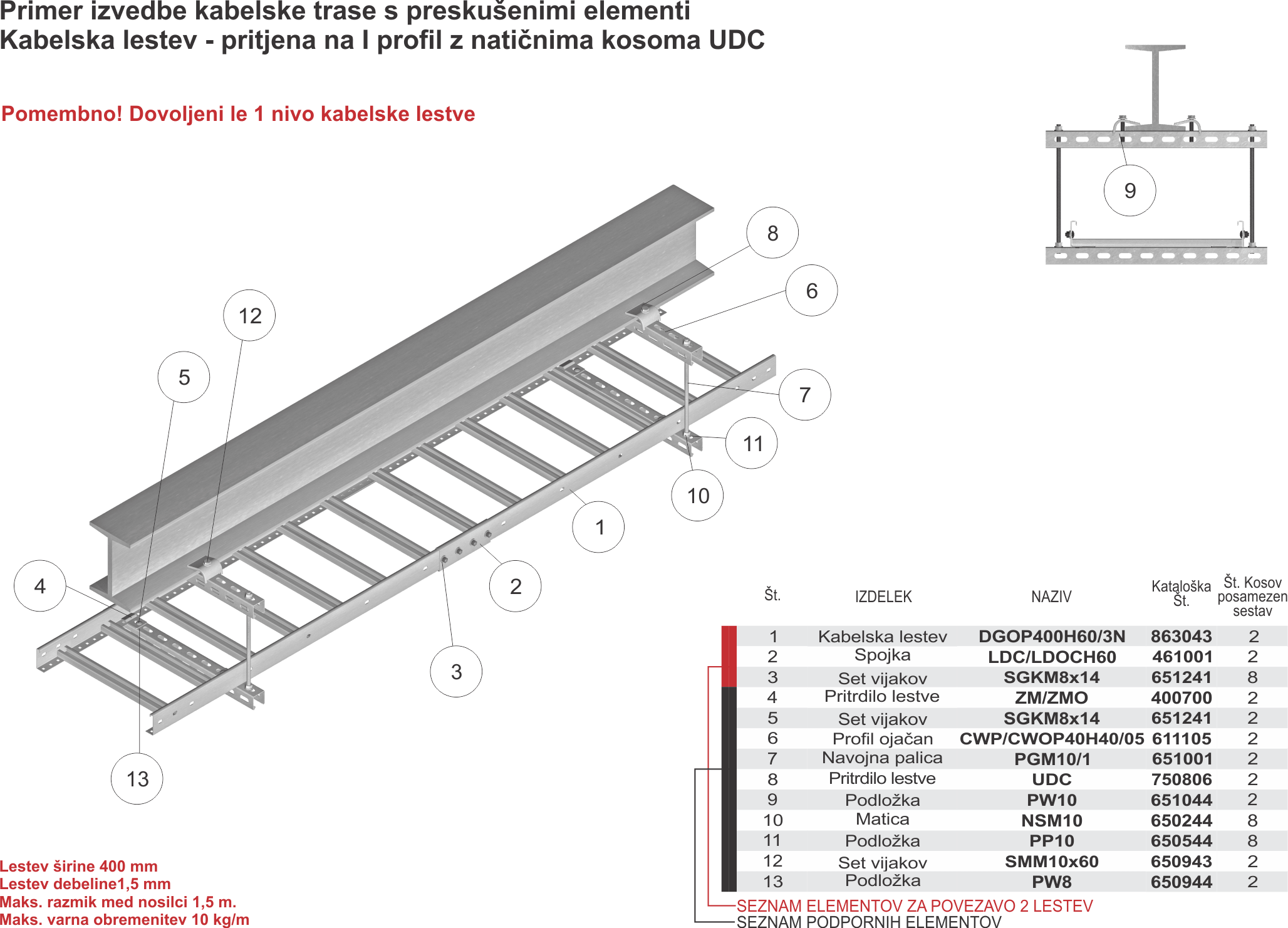 53-2 - Kabelska lestev - pritrjena na I profil z natičnima kosoma UDC