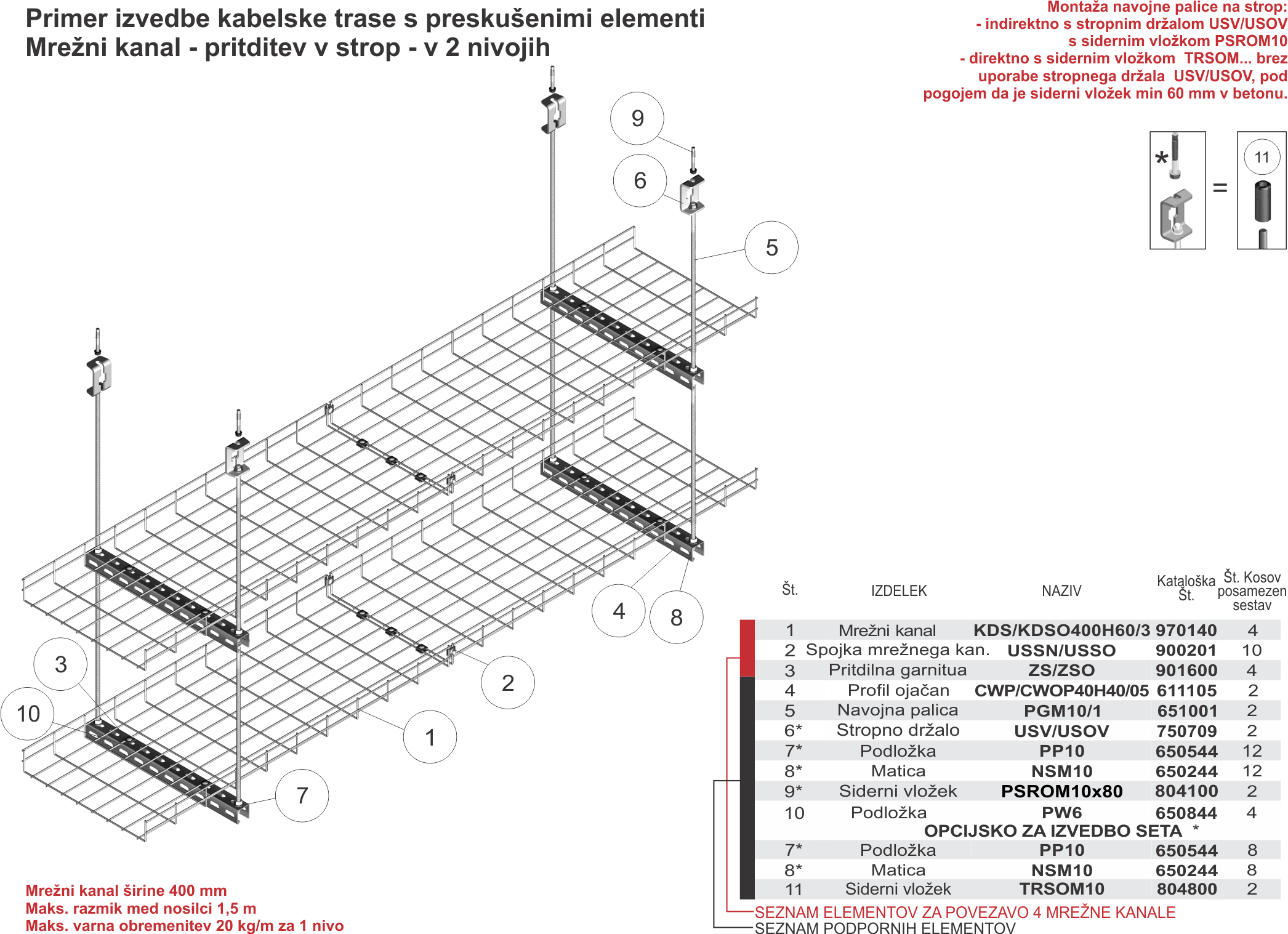 63-2 - Mrežni kanal - pritrditev v strop - v 2 nivojih