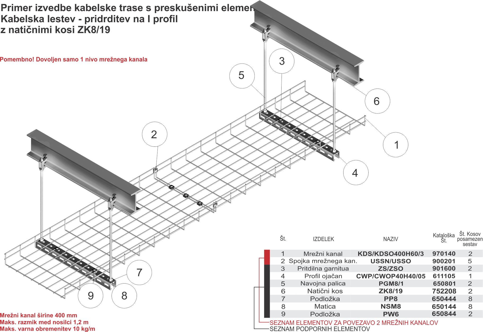 65-2 - Kabelska lestev - pritrditev na I profil z natičnimi kosi ZK8/19
