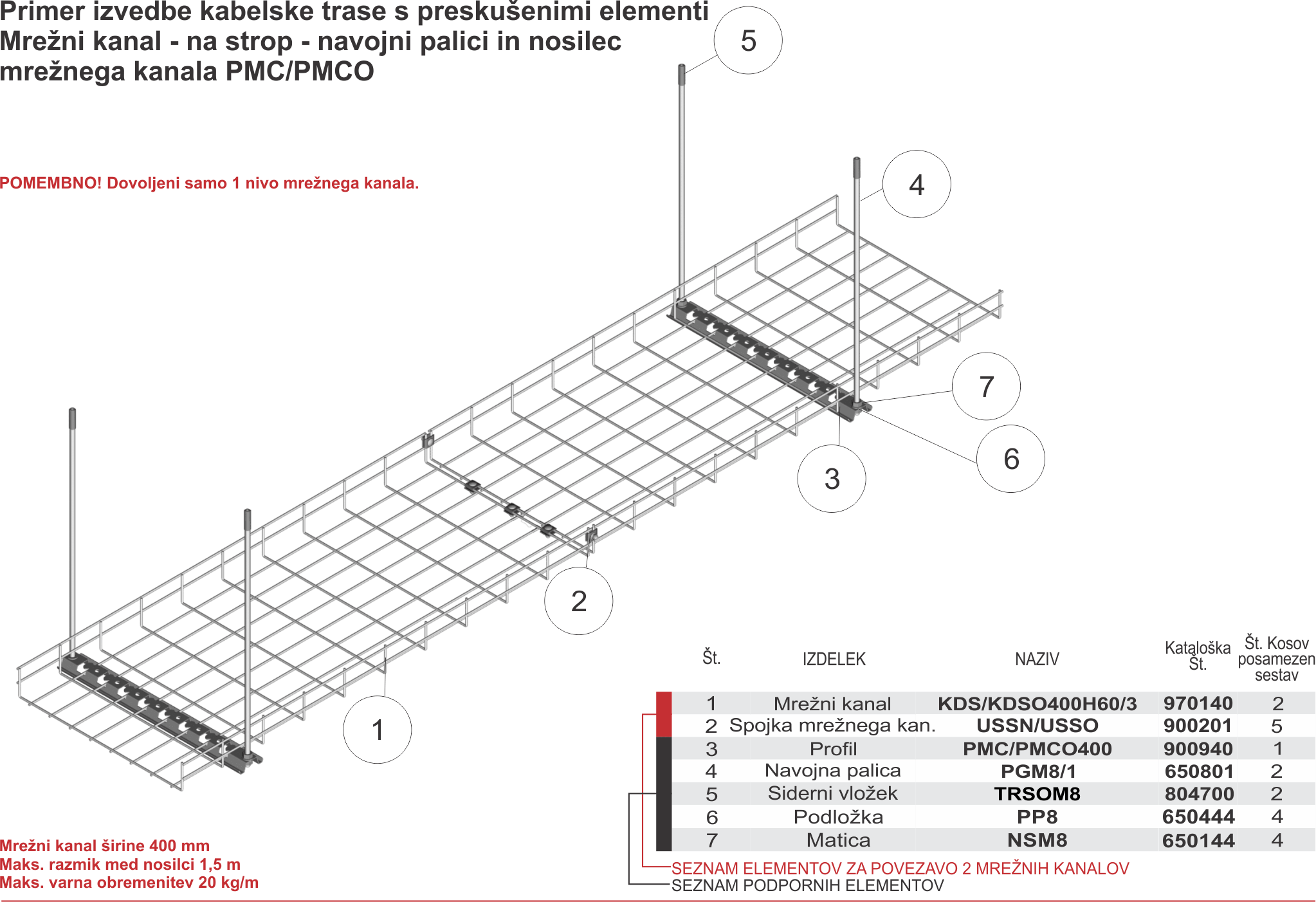 70-1 - Mrežni kanal - na strop - navojni palici in nosilec mrežnega kanala PMC/PMCO